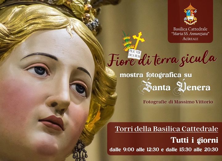 In occasione dei Solenni Festeggiamenti in onore di Santa Venera, Vergine e Martire, patrona della Città e della Diocesi di Acireale, oggi Domenica 7 luglio verrà inaugurata una mostra fotografica dal titolo “Fiore di terra sicula” su Santa Venera. Le fotografie saranno esposte sul percorso delle torri della Basilica Cattedrale “Maria SS. Annunziata”