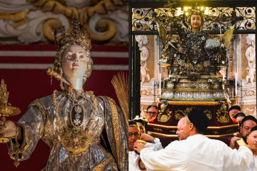 Le sacre spoglie della martire siracusana saranno traslate infatti anche nella diocesi di Catania: il 28 e il 29 saranno nella Cattedrale etnea, e durante il tragitto da Siracusa sosterà prima a Carlentini (lì dove si fermò Lucia nel suo pellegrinaggio) e a Belpasso (dove c’è una fortissima devozione per la santa). C’è, dunque, un altro ritorno di Lucia: quello ai piedi di Agata. Agata e Lucia, di nuovo insieme. «Le due Chiese si incontrano per accogliere gli insegnamenti delle due sante vergini e martiri ha detto Lomanto -. La loro testimonianza cristiana contagia e sollecita tutti noi. A ciascuno è richiesto di compiere un cammino personale di fede, vero e profondo, per accogliere Dio, vivere con Lui e testimoniarlo di fronte alle sfide odierne e ai segni dei tempi». In attesa dell’evento di dicembre, acquista un significato inedito la festa estiva di Sant’Agata, il 17 agosto, che ricorda l’898° anniversario della traslazione delle reliquie da Costantinopoli a Catania. «Oggi la nostra città sta cercando di uscire dalle derive dell’incuria della persona e dell’ambiente e un cristiano, un devoto non può non essere protagonista di questo cambiamento, altrimenti la sua fede sarebbe vana», ha detto nei giorni scorsi l’arcivescovo Luigi Renna, ricordando l’avvicinarsi del Giubileo, che si aprirà in diocesi il 29 dicembre, in Cattedrale, per una «provvidenziale coincidenza», sotto il segno di Agata e Lucia insieme.