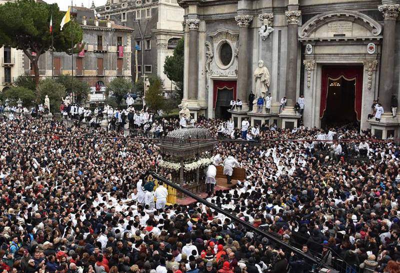 Diversamente dalle feste in onore di Agata nel primo millennio, sulle quali nulla sappiamo, il culto agatino è ben documentato già dal IV secolo: dall’epigrafe di Iulia Florentina, al Calendario di Cartagine, alla diffusione del nome, delle chiese, degli inni e delle raffigurazioni della santa nel Mediterraneo, fino ad arrivare alle Passioni che ricordano il miracolo della lava, Agata emerge precocemente come protettrice della città, una delle “mura di carne” che difendono Catania da secoli.