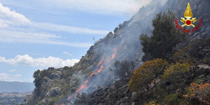 Da sei giorni gli operai del corpo forestale della regione siciliana sono al lavoro per cercare di circoscrivere le fiamme che a più riprese sono divampate nella zona del costone roccioso.