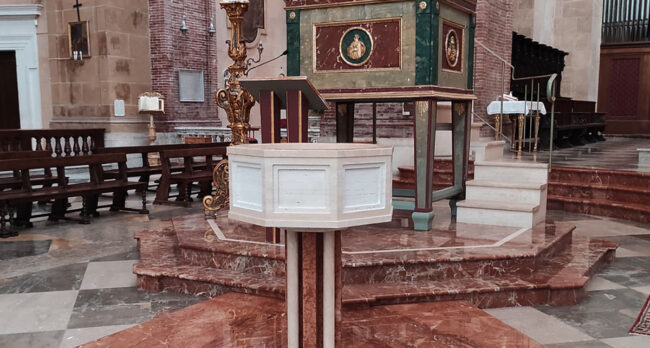 Verrà benedetto durante la Veglia di Pasqua il nuovo fonte battesimale della chiesa madre di Marsala, donato dalle cantine Pellegrino. Il nuovo fonte in marmo e la sua collocazione sono frutto di una riflessione progettuale che ha cercato di privilegiare alcuni aspetti fondamentali relativi al sacramento che vi si celebra, mediante determinate scelte spaziali e formali. Inteso come luogo della Chiesa che accoglie, esso è stato collocato in continuità estetica e liturgica con l’ambone esistente, ma in uno spazio ben definito al fine di favorire la dimensione comunitaria del sacramento del battesimo e, dunque, consentire la partecipazione della comunità al rito battesimale.