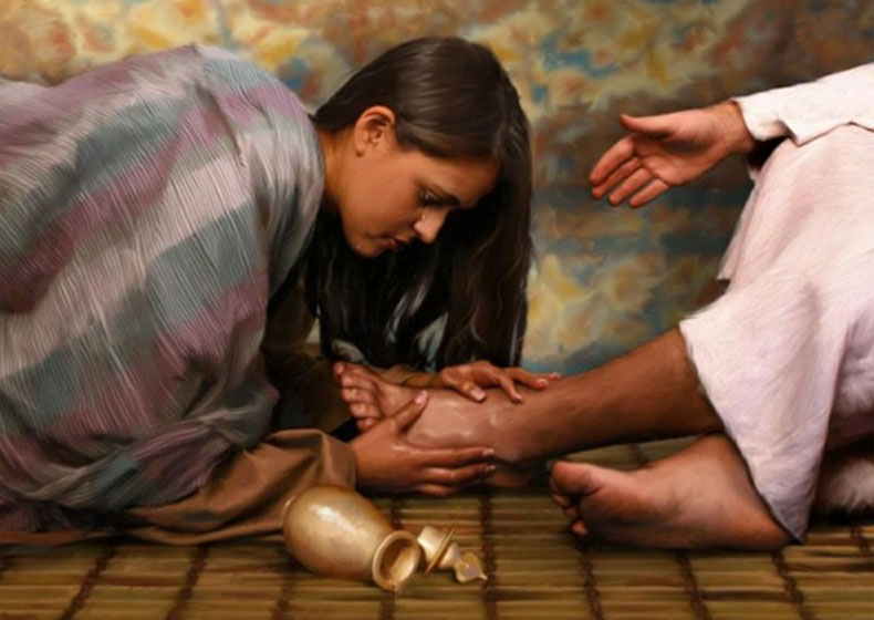 Che spinta potente deve aver sentito quella donna per decidere di sfidare tutte le buone consuetudini, di calpestare i rituali consolidati, solo per dare ascolto al suo cuore inquieto. E che convinzione altrettanto forte deve aver avuto, per sapere con tutte le sue fibre che quel giovane rabbi, di cui aveva sentito raccontare gesti e parole, non l’avrebbe disprezzata, non l’avrebbe cacciata. Va diritta davanti a lui, non gli chiede permesso, fa una cosa inaudita tanto è sconveniente: mani, bocca, lacrime, capelli, profumo su quei piedi.