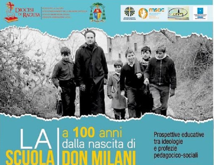 La scuola a cento anni dalla nascita di don Lorenzo Milani. Prospettive educative tra ideologie e profezie pedagogico-sociali”. Questo il titolo dell’iniziativa che la Diocesi di Ragusa (Ufficio per la cultura, Ufficio Insegnamento della Religione Cattolica, Ufficio Comunicazioni Sociali, Consulta Aggregazioni Laicali, Azione Cattolica, Movimento Studenti di Azione Cattolica, UCIIM, AIMC), in collaborazione con l’Ufficio Scolastico Regionale di Sicilia, organizza attraverso un convegno e una mostra/riflessione sulla figura profetica del Priore di Barbiana.