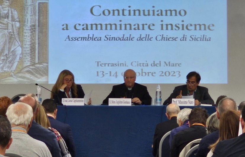 Ad aprire ieri i lavori dell’Assemblea Sinodale delle Chiese di Sicilia, alla “Città del mare” di Terrasini, il vescovo della Diocesi di Patti Mons. Guglielmo Giombanco, segretario della Cesi. L’evento che vedi coinvolti tutte le diocesi siciliane ha come tema : “Continuiamo a camminare insieme”.
