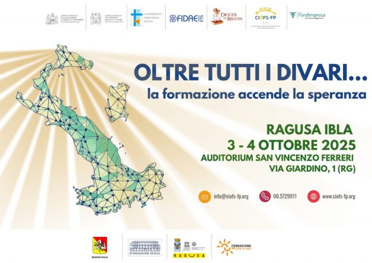 “Oltre tutti i divari… la formazione accende la speranza” è il titolo dell’evento nazionale promosso dal CIOFS-FP (Centro Italiano Opere Femminili Salesiane – Formazione Professionale) che si terrà a Ragusa il venerdì 3 e sabato 4 ottobre 2025, con l’obiettivo di “promuovere la formazione professionale e continua come strumento per la coesione sociale, l’equità e lo sviluppo, affrontando questioni come divari territoriali, generazionali, digitali, di genere e occupazionali“.