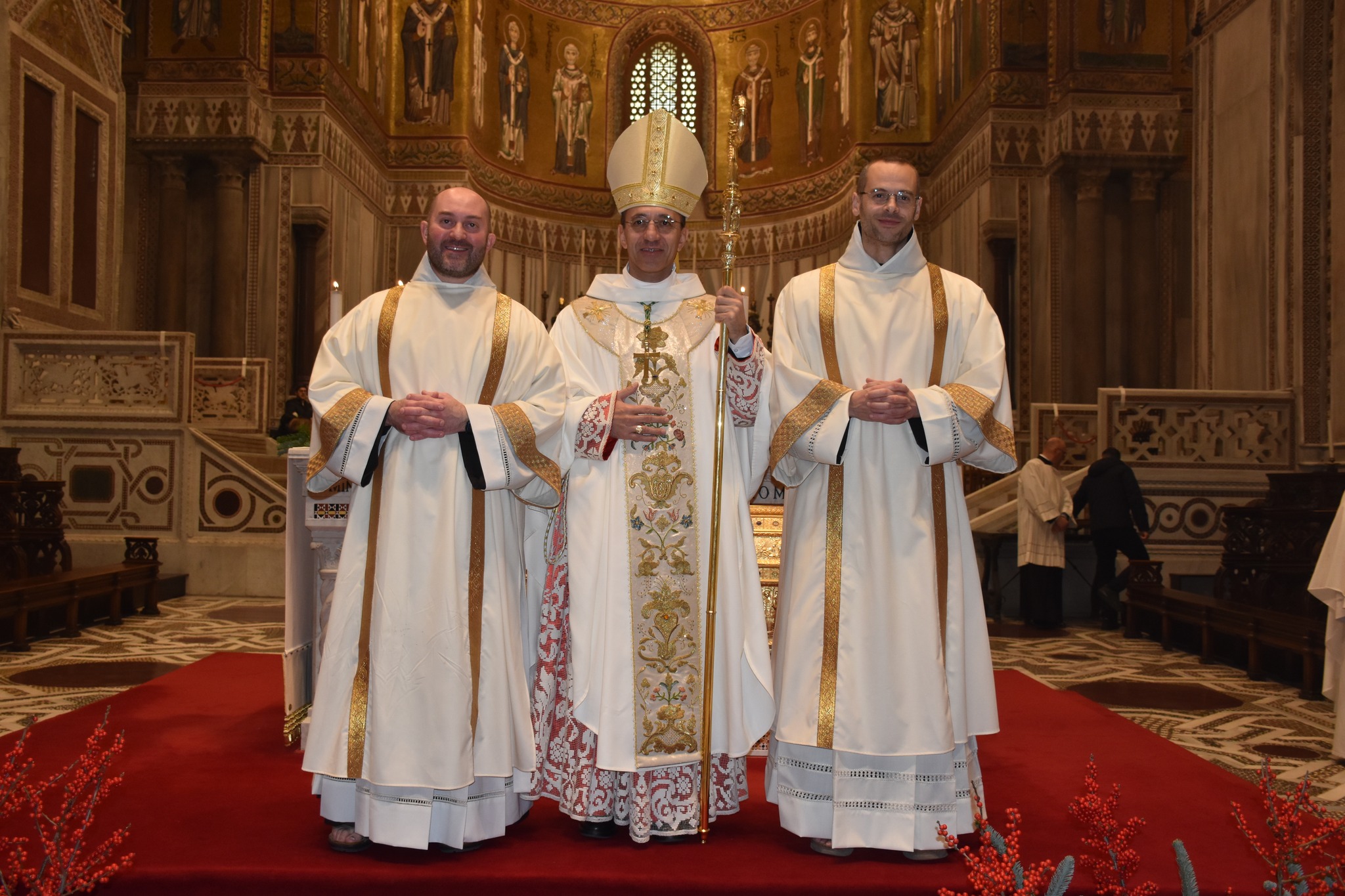 frati-diaconi-300x200 Frati Minori di Sicilia in festa per due nuovi diaconiTra i mosaici bizantini che inondano di luce sacra la storia dell’umanità, sotto lo sguardo ieratico e benedicente del Pantocratore, inizia umilmente la liturgia, a presiederla Mons. Gualtiero Isacchi, Arcivescovo di Monreale. Intorno a lui, la Fraternità provinciale dei Frati Minori di Sicilia – in festa per le ordinazioni diaconali di fra’ Angelo Raspante (della Fraternità di Messina) e fra’ Biagio La Spada (della Fraternità interprovinciale della Verna) -, le famiglie e i tanti amici degli ordinandi, giunti per l’occasione da varie parti dell’ isola e non solo.