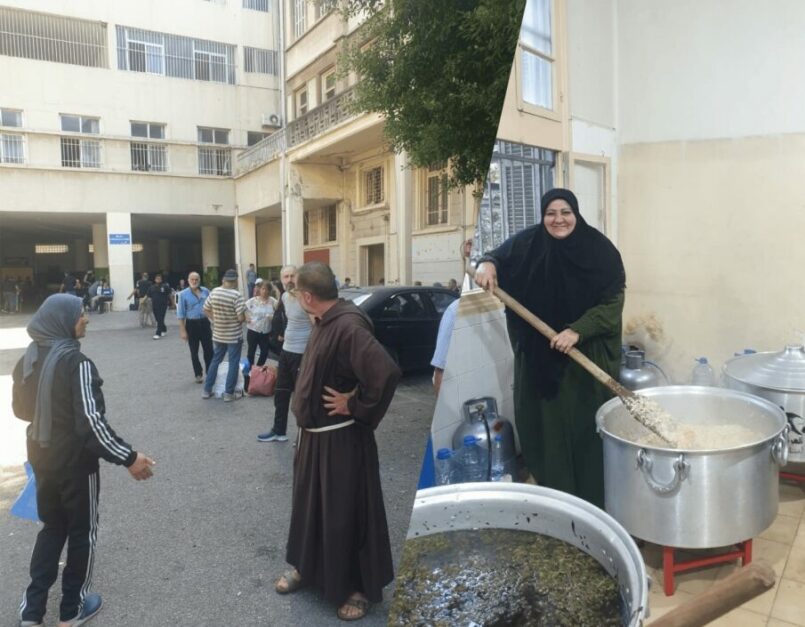 I frati hanno dato testimonianza con la loro stessa presenza, ma anche aprendo le porte delle nostre strutture alle persone che fuggono dalle ferite della guerra, hanno dato una risposta concreta accogliendo gli sfollati provenienti soprattutto dai paesi del sud del Libano. Specificamente sono tre i luoghi in cui i frati accolgono gli sfollati: a Badaro; ad Hamra (lì, nel cortile, hanno montato diverse tende, in mancanza di spazio sufficiente; ci sono molte persone di tutte le età , anziani, giovani e molti bambini); ad Abey.