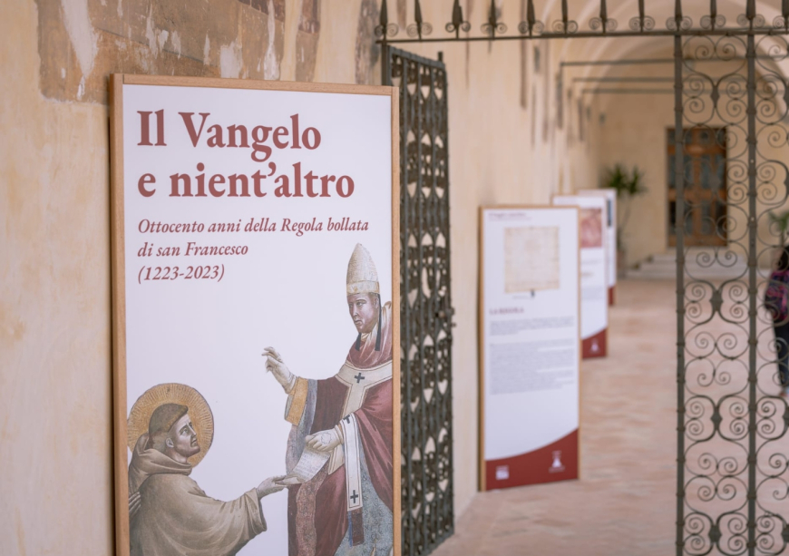 Nel pomeriggio di Martedì 23 Maggio 2023, vigilia della Festa della Dedicazione della Basilica, alla presenza di oltre un centinaio di persone, soprattutto confratelli francescani dei diversi Ordini presenti in Assisi, è stata inaugurata nel piano superiore del Chiostro Sisto IV della Basilica San Francesco la mostra “Il Vangelo e nient’altro”. L’evento è stato realizzato in occasione delle celebrazioni per l’ottavo centenario dell’approvazione della Regola francescana, avvenuta nel 1223 attraverso la bolla pontificia Solet annuere di Papa Onorio III.