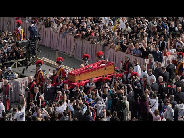 Prima la preghiera introduttiva nella cappella poi la processione con i cardinali, i patriarchi, il cardinale Camerlengo Kevin Farrell e il maestro delle celebrazioni pontificie, monsignor Diego Ravelli. Sulle spalle dei sediari pontifici, il feretro del Papa ha percorso la Via della Sacrestia, passando per la Piazza dei Protomartiri Romani, uscendo in Piazza San Pietro attraverso l’Arco delle Campane. Ventimila persone con lunghi applausi hanno salutato il passaggio del feretro di Papa Francesco, la processione è giunta all’interno della Basilica e, davanti l’altare della Confessione la bara del Pontefice è stata collocata a terra.