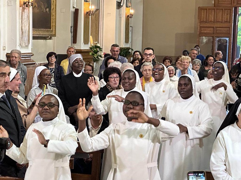 Durante la celebrazione non sono mancati i canti africani accompagnati da balli che le suore africane hanno eseguito testimoniando la gioia di seguire il Signore nella Congregazione della Ancelle Riparatrici fondate da mons. Antonino Celona.