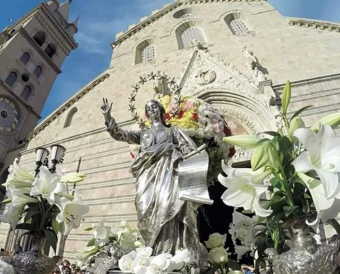Un lunedì di festa a Messina per la Patrona della città. Festa della Madonna della Lettera, alle 11 in Duomo il solenne pontificale concelebrato dall’abate Rosa con l’arcivescovo Giovanni Accolla e l’ausiliare Cesare Di Pietro, alla presenza delle massime autorità civili, militari e accademiche.