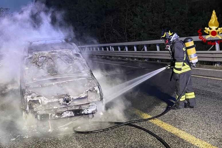 Le fiamme hanno avvolto completamente la vettura, distruggendo ogni sua parte.