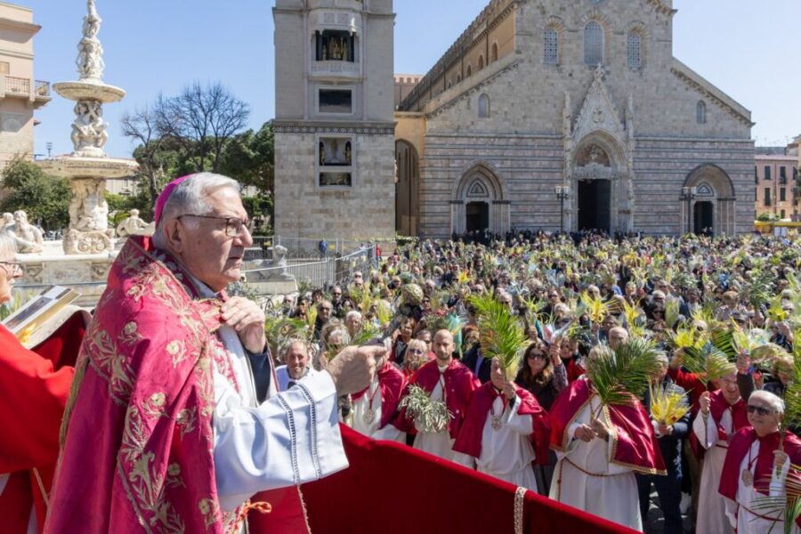 In una piazza Duomo gremita, l’arcivescovo Giovanni Accolla ha presieduto il rito della benedizione delle palme e dei rami d’ulivo e celebrato l’Eucaristia, parlando al cuore dei fedeli e