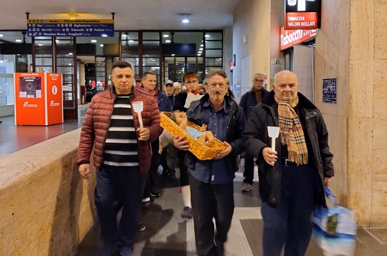 La novena in stazione è ormai un appuntamento fisso che i fratelli e le sorelle che frequentano abitualmente questo luogo per prendere un pasto caldo ogni sera, aspettano con ansia. Un momento di condivisione e di preghiera che coinvolge anche i tassisti, i passeggeri e la Polizia (Polfer) sempre presente in ogni occasione.