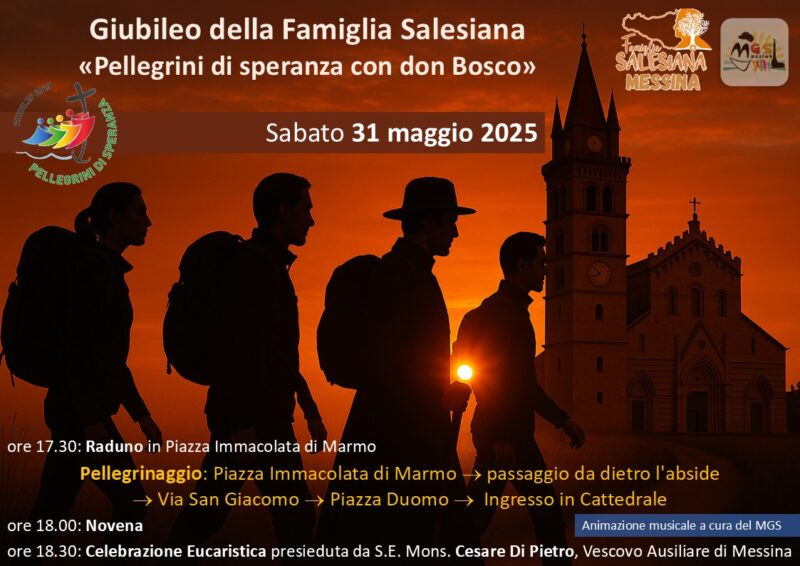 La Famiglia Salesiana di Messina si appresta a vivere il suo giubileo diocesano. Sabato 31 maggio, alle ore 17:30, i gruppi della Famiglia Salesiana presenti a Messina si ritroveranno presso la stele di Piazza Immacolata di marmo e da lì si muoveranno verso l’ingresso della Basilica Cattedrale. Prenderanno parte alla novena alla Madonna della Lettera e alle 18:30 parteciperanno alla celebrazione Eucaristica presieduta dal Vescovo Ausiliare Mons. Cesare di Pietro.