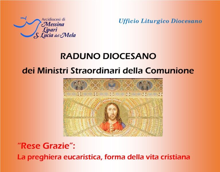 Mercoledì 5 giugno, organizzato dall’ufficio liturgico diocesano, alle ore 16.30 si terrà in Cattedrale il raduno diocesano dei ministri straordinari della Comunione dal tema “Rese grazie: la preghiera eucaristica, forma di vita cristiana”, che avrà relatore don Domenico Messina della diocesi di Cefalù.