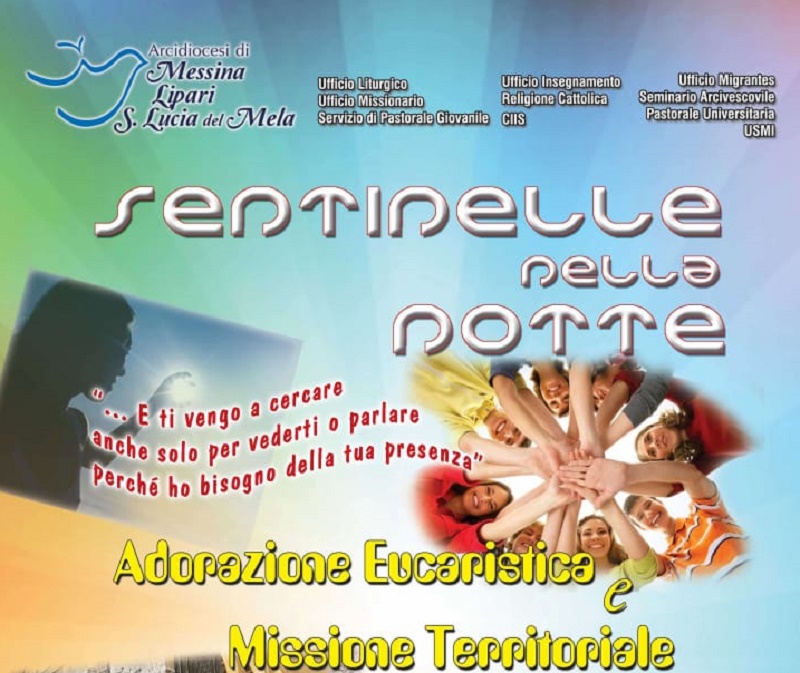 Nell’ambito del progetto pastorale “Sentinelle nella notte”, sabato 27 gennaio, dalle ore 21.30 alle ore 00.30, presso la chiesa “SS. Annunziata dei Catalani”, alcuni Uffici e organismi diocesani (Ufficio Liturgico, Ufficio Migrantes, Ufficio Missionario, Ufficio Insegnamento Religione Cattolica, Pastorale Giovanile Diocesana, Pastorale Universitaria, Seminario Arcivescovile,  Usmi, Ciis) proporranno un’esperienza di Adorazione Eucaristica e missione territoriale rivolta soprattutto ai giovani di Messina. Presiederà l’Adorazione comunitaria delle ore 21.30 il Direttore della Pastorale Universitaria Padre Antonio Gugliandolo.