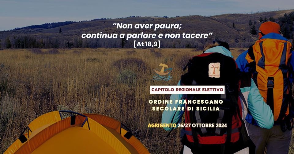 Presso il Grand Hotel Mosè di Agrigento, la fraternità regionale dell’Ordine Francescano Secolare di Sicilia (OFS Sicilia)il 26 e il 27 ottobre si riunirà per celebrare l’VIII Capitolo Elettivo. Questo importante incontro, che segnerà il bilancio dei tre anni passati e delineerà le prospettive future, avrà come tema guida le parole tratte dagli Atti degli Apostoli: “Non aver paura; continua a parlare e non tacere”. Un tema che ha accompagnato l’intera fraternità regionale nel percorso pre-capitolare, offrendo spunti di riflessione e orientamento per i prossimi anni.