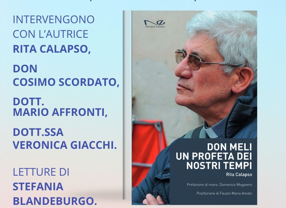 Inoltre lunedì 1 luglio alle ore 17.30 ai Cantieri Culturali della Zisa (Istituto Gramsci) verrà presentato il libro “Don Meli, un profeta dei nostri tempi” di Rita Calapso. Interverranno, oltre all’autrice, don Cosimo Scordato, il dott. Mario Affronti, la dott.ssa Veronica Giacchi. Letture a cura di Stefania Blandeburgo.