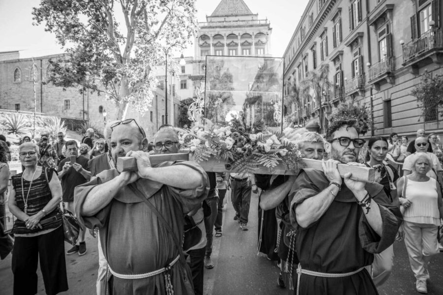 di FraPè – Il Vangelo parla ancora e lo fa attraverso segni a volte incomprensibili, umili. Lo fa tramite uomini e donne che hanno saputo incarnare la Parola e viverla nel loro tempo testimoniando una fede autentica fatta di gesti ordinari che diventano miracoli se vissuti con amore. Ed è straordinario il miracolo che Benedetto da San Fratello è riuscito a fare anche ieri in un caldo pomeriggio palermitano:  a Porta Nuova, tantissima gente raccolta davanti all’urna contenenti le reliquie del santo di origini africane per poi recarla in Cattedrale. Gente che ha visto consumarsi dentro le fiamme la propria chiesa, i propri ricordi, che ha fatto di tutto per salvare un corpo di un uomo che ha saputo testimoniare la tenerezza e la misericordia di Dio. Gente che si rivolge al santo francescano per avere consolazione e speranza. Padri e madri di famiglia, giovani, che con occhi lucidi e volto bagnato dalle lacrime hanno accolto uno scheletro bruciacchiato che odora di Vangelo … odora di umanità. Il miracolo ancora una volta della fraternità, della preghiera, della condivisione…