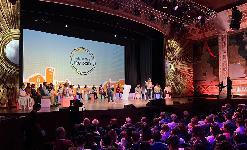 “Cari giovani, non abbiate paura delle tensioni e dei conflitti, cercate di abitarli e di umanizzarli, ogni giorno. Vi affido il compito di custodire la casa comune e avere il coraggio del cammino” dice Francesco ai partecipanti all’incontro di Assisi, ai quali consiglia pazienza e intraprendenza all’interno delle loro Chiese e tra le loro realtà economiche. “Rimanete dunque aperti e cercate con determinazione ed entusiasmo i vostri colleghi, i vostri vescovi, i vostri concittadini” incoraggia ancora il Papa, che invita a coinvolgere tutti nell’economia e nelle soluzioni del futuro e chiede “di rimanere attivamente uniti, costruendo su temi operativi veri e propri ponti fra i continenti, che portino definitivamente fuori l’umanità dall’era coloniale e delle diseguaglianze”. E concludendo il suo messaggio il Pontefice chiama alla fraternità universale ed esorta quanti sono parte della comunità di Economy of Francesco ad essere “pionieri dall’interno della vita economica e imprenditoriale di uno sviluppo umano integrale”. Dopo l’appuntamento globale di questo pomeriggio, il 7 e l’8 ottobre quanti si sono radunati ad Assisi proseguiranno in quello che è “L’evento hub Italia 2023”, con momenti di formazione, la condivisione di progetti ed esperienze, l’elaborazione di prospettive e la riflessione sulla nuova esortazione apostolica del Papa Laudate Deum.
