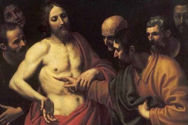 E arriviamo così al noto episodio dell’incredulità di Tommaso. Tutta la comunità degli apostoli è scossa dalla perdita di Gesù e dalla violenza della sua morte, ma Gesù è risorto e subito appare ai suoi per tranquillizzarli. Tommaso non c’è e al racconto degli altri non crede: forse per quella sua testardaggine innata, forse perché è dispiaciuto di non essere stato presente, ma esige di toccare con mano le ferite dei chiodi e quella del costato. È un uomo, in fondo. Gesù lo accontenta, tornando otto giorni dopo. Tommaso allora gli crederà subito, tanto da chiamarlo “Mio Signore e mio Dio”, come nessuno ancora aveva mai fatto. Gesù, infine, fa una promessa che è per tutta l’umanità, fino alla fine dei tempi: “Beati quelli che, pur non avendo visto, crederanno”.