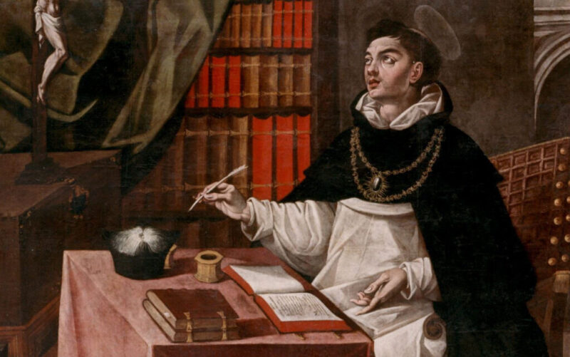 “Voi lo chiamate il bue muto! Io vi dico che questo bue muggirà così forte che il suo muggito risuonerà in tutto il mondo”. Non si sbagliava Sant’Alberto Magno, suo maestro. Con queste parole, lo difese dai suoi compagni di studi, che a causa del suo carattere taciturno e apparentemente non brillante, gli avevano dato quel soprannome.