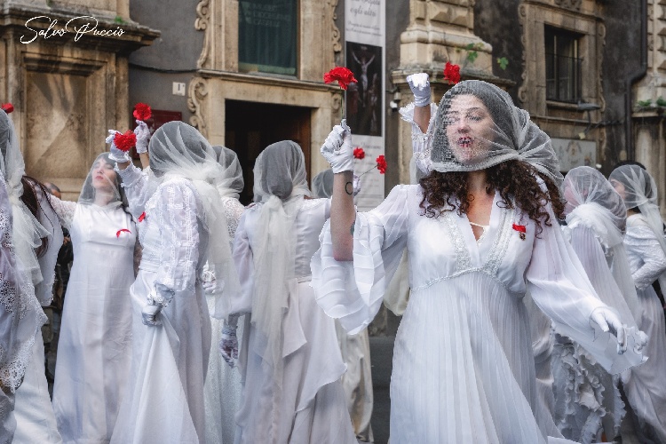 “La nostra apparizione, la mattina del 3 febbraio, rivendica la presenza del femminile nella festa, siamo devote alla santa, alla donna e alla libertà. Sant’Agata ricordiamo è morta non di morte naturale ma per mano di uomo. Non abbiamo mai mancato di rispetto alla religiosità della festa e la nostra non è una ‘esibizione individualistica’, ma è relazione, comunità e aggregazione gioiosa. Consideriamo la danza una manifestazione del sacro. Perché la danza è preghiera, è comunità, è liberazione. La profetessa Miriam, sorella d’Aronne, esterna la sua esultanza e ringrazia Dio, dopo il passaggio del Mar Rosso, ‘formando cori di danze’ con le altre donne, suonando i timpani e cantando (Cf Es 15,20). Non smentiamo gli aspetti pagani della nostra presenza semplicemente perché fa parte della storia, ricordando anche il lontano culto di Iside. Non vogliamo cancellare le tracce del passato perché quello che siamo è una stratificazione di memoria e diversità. Nel 2013 siamo ritornate omaggiando le ultime ‘Ntuppatedde apparse nel 1868 quando furono insultate, fischiate e cacciate via in quanto donne che rivendicavano la propria libertà. Il passato persiste nel presente e qui si pone di nuovo una negazione che riguarda sempre la donna, vogliamo ritornare a negarle come nei secoli passati perché adesso danzano con un velo e un fiore in mano?”.