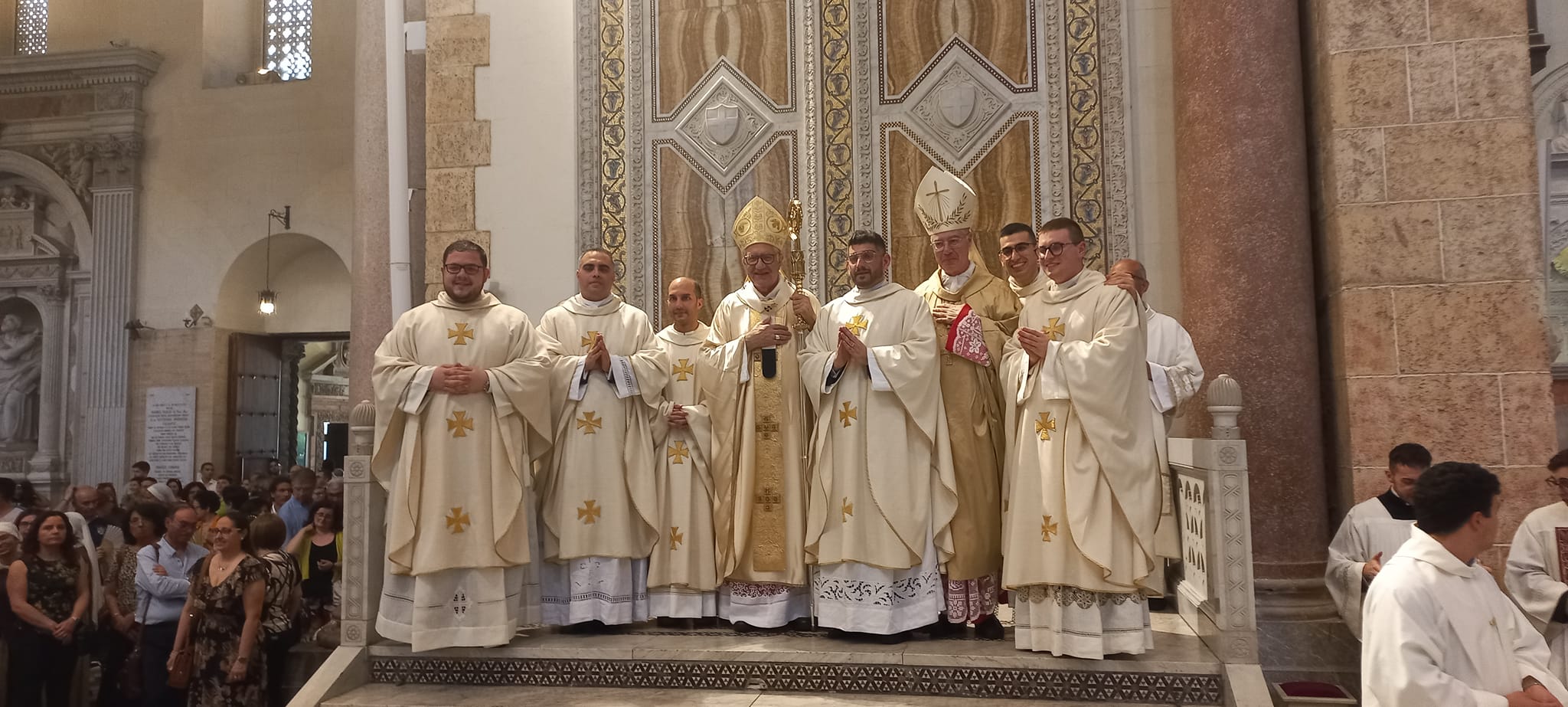 A presiedere l’Eucarestia l’Arcivescovo Mons. Giovanni Accolla che per l’imposizione delle mani ha ordinato presbiteri Nicola Antonuccio (parrocchia “S. Pietro Apostolo e S. Maria del Rosario di San Pier Niceto), Rosario De Luca (parrocchia “S. Marina” di Milazzo), Antonino Di Vincenzo (parrocchia “S. Antonio Abate di S. Domenica Vittoria), Antonino Morabito (parrocchia “S. Michele Arcangelo” in S. Michele), Gianmarco Restuccia (parrocchia “S. Maria Immacolata” di Contesse) e Fra Mario Isgrò (Fraternità “Amici di Gesù Buon Pastore”).