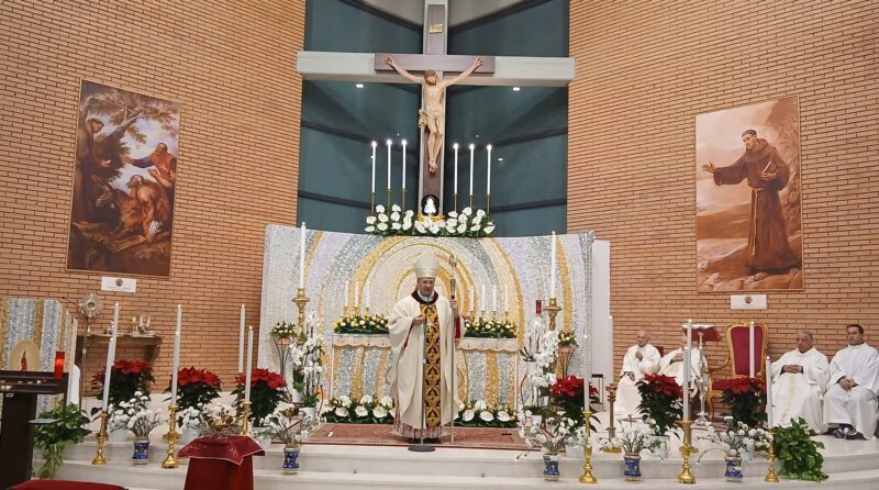 Nel saluto iniziale il parroco Mons. Michele Giansiracusa ha ricordato il significato del ministero episcopale e del legame della comunità parrocchiale con l’Arcivescovo al quale ha donato una croce pettorale.Nell’omelia l’Arcivescovo, richiamando Ef 3,18, ha messo in luce le quattro dimensioni dell’amore di Cristo: la larghezza, ossia la universalità dell’amore divino che abbraccia tutti e a tutti si dona; la lunghezza, che indica l’eternità dell’amore di Dio che sempre si offre all’uomo in qualsiasi sua condizione; l’altezza, per sottolineare che al di sopra di tutto vi è la carità divina; la profondità, cioè l’amore crocifisso, non compreso, non corrisposto, l’amore che si abbassa per la salvezza di tutti, che si china per fare misericordia con noi.
