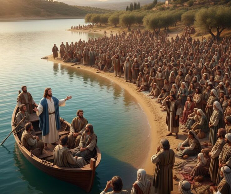 gesu-3-300x150 Spazio a DioNel Vangelo odierno Gesù chiede quasi in elemosina ai suoi discepoli di fargli un po’ di spazio nella loro barca, per poter rivolgere la sua parola alla folla, senza essere schiacciato da essa. Dio, pur potendo fare tutto da solo, si fa mendicante della nostra accoglienza nella barca della nostra vita, perché Lui possa continuare ad agire anche oggi e a raggiungere tutti anche tramite noi. Gesù ci ha insegnato che Dio è talmente amante della nostra libertà da consegnarsi alle nostre scelte, ai nostri sì e ai nostri no.