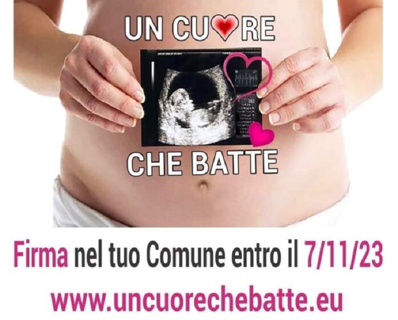 Si chiede, tramite una raccolta di firme, l’introduzione, nell’articolo 14 della Legge 194 del 1978, del comma 1-bis, che prevede l’obbligo per il medico che effettua la visita che precede l’interruzione volontaria della gravidanza, di far vedere, attraverso esami strumentali, alla donna intenzionata ad abortire, il nascituro che porta in grembo e a farle ascoltare il battito cardiaco dello stesso. Si fa leva sul fatto che è “obbligo giuridico e deontologico del medico che la donna abbia il diritto di essere resa consapevole della vita che porta nel grembo, una vita con un cuore che pulsa”.