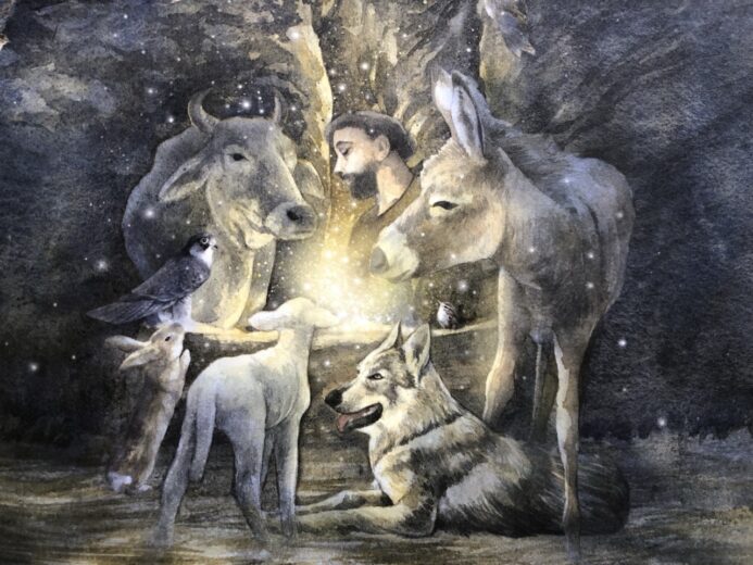Il dialogo con il lupo, che forse, secondo gli studiosi, era un semplice brigante della zona, e l’esortazione che san Francesco gli fece, si possono tradurre in tanti modi.