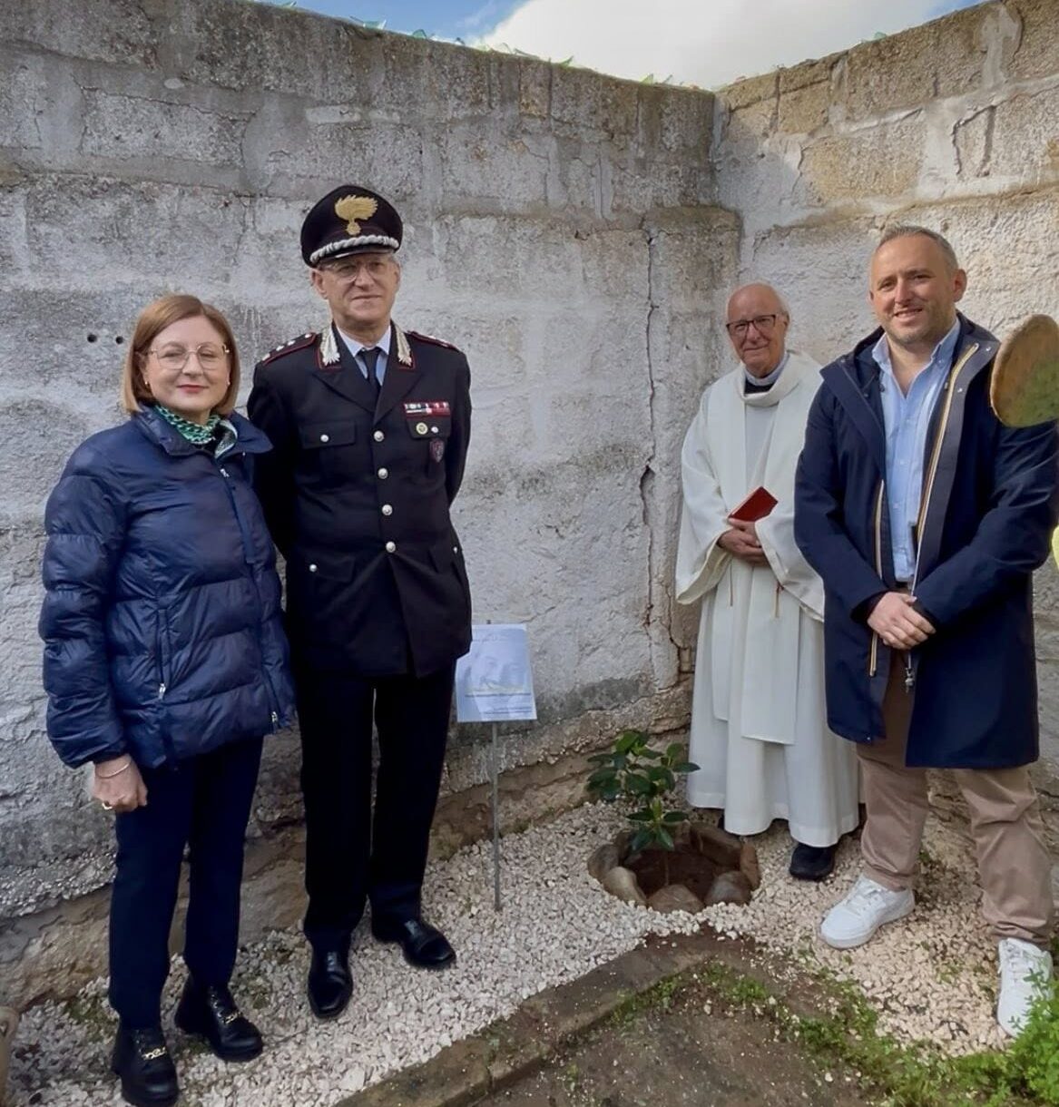 La cerimonia di piantumazione, semplice ma partecipata, si è svolta alla presenza del comandante Micalizzi, del ministro regionale OFS di Sicilia Carmelo Vitello, dei consiglieri Giuseppe Di Grande e Umberto Virgadaula, dell’assessora ai servizi sociali Francesca Corbino in rappresentanza dell’Amministrazione comunale, della fraternità di Vittoria e di numerosi studenti.