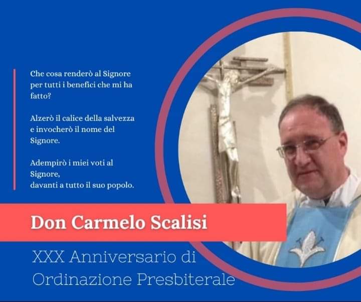 Le Comunità di Caronia rendono lode al Signore per l’amore e la fedeltà del parroco don Carmelo Scalisi in occasione del suo 30mo di Ordinazione Presbitrale avvenuta il 2 luglio 1994 per le mani di Mons. Ignazio Zambito, allora Vescovo di Patti.
